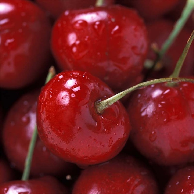 Fruit grand, rouge foncé et brillant; ne se déchire presque pas.