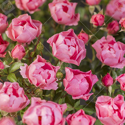 Veel kleine gevulde bloemen.