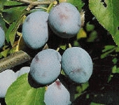 Kleine, langwerpige blauwe pruim.Groengeel vruchtvlees.