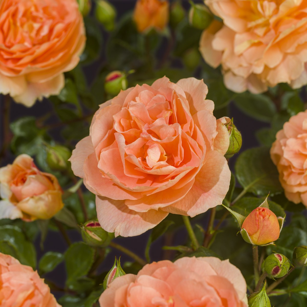 Abrikooskleurige grootbloemige trosrozelaar.