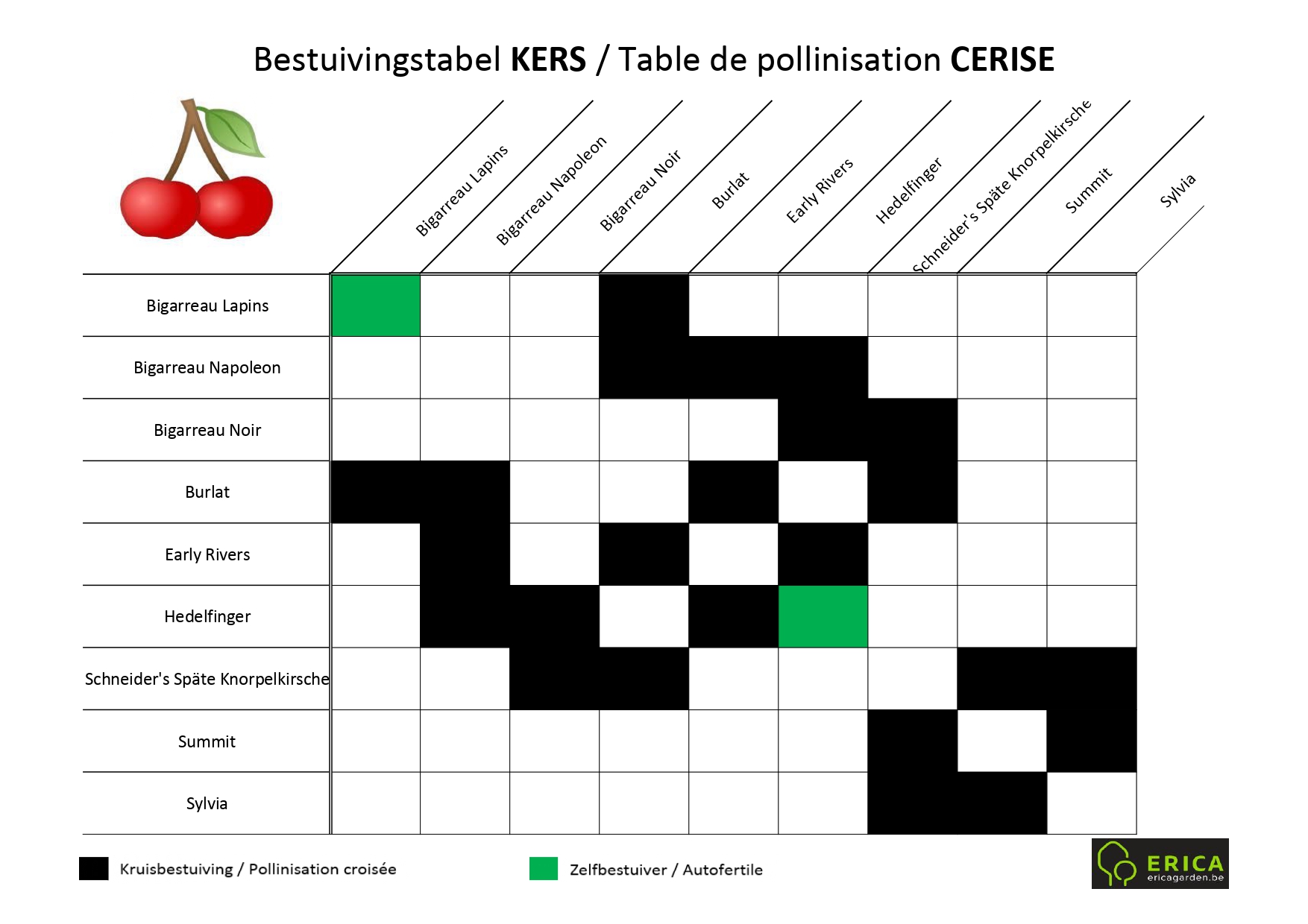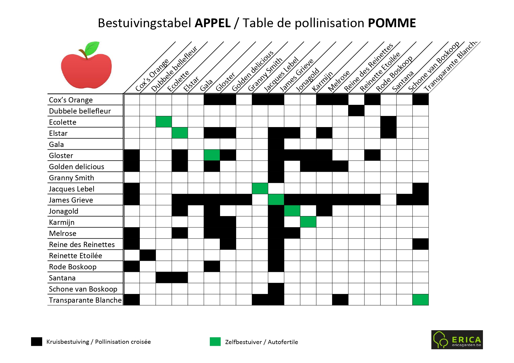 Bekijk onderstaande tabellen om een goede combinatie te maken van variëteiten of kom eens langs op ons plantencentrum en dan helpen we met plezier!